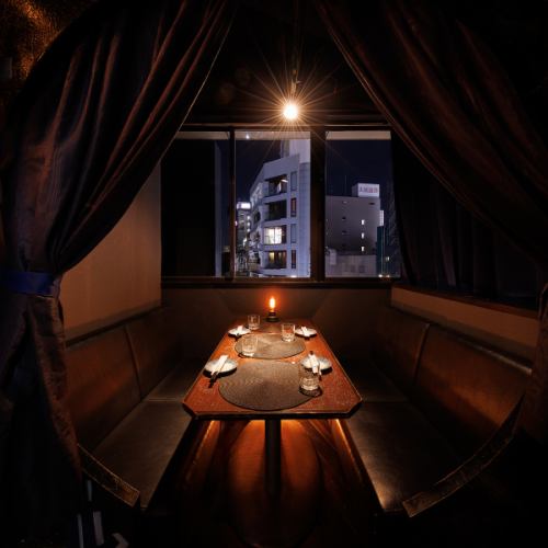 【デートに最適!景色が最高のお席♪】柔らかい照明と上品なインテリアが演出するお洒落な空間♪お席は全席個室なので、記念日・誕生日やお祝い事など、特別なシーンや、大切な方へのおもてなしにも最適です!ご予約はお早めにどうぞ♪美味しい料理とお酒を楽しみながら、素敵な時間をお過ごしください。